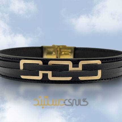 دستبند چرم و طلا مربع مینیمال ROH30